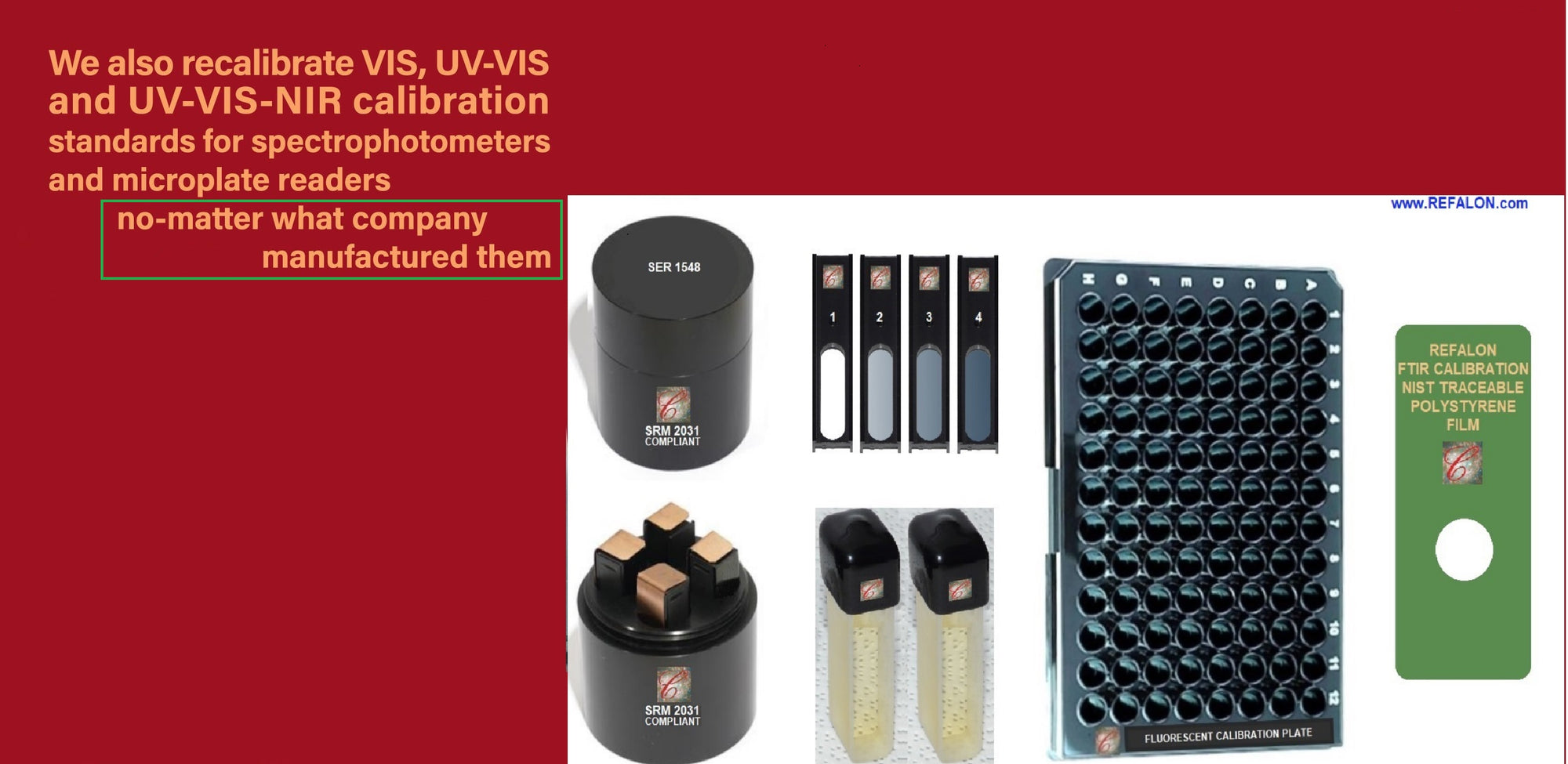Certified NIST-traceable, NIST-compliant, and NRC-traceable calibrations of Refalon benchmark artifacts, performed by the ISO-17025, ISO-Guide34, and ISO-9001 compliant Metrology Facility of the Government of Canada — as per formal agreements between the parties involved.
